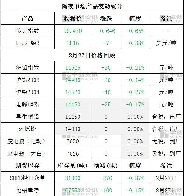 【铅早评】LME有色金属全线下跌 铅价弱势调整(20200228)